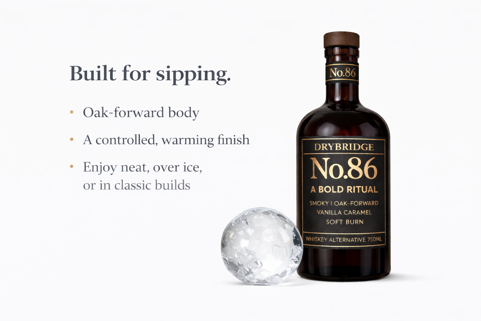 No. 86 is a premium non-alcoholic whiskey alternative created for those who want the ritual — without the fog.
